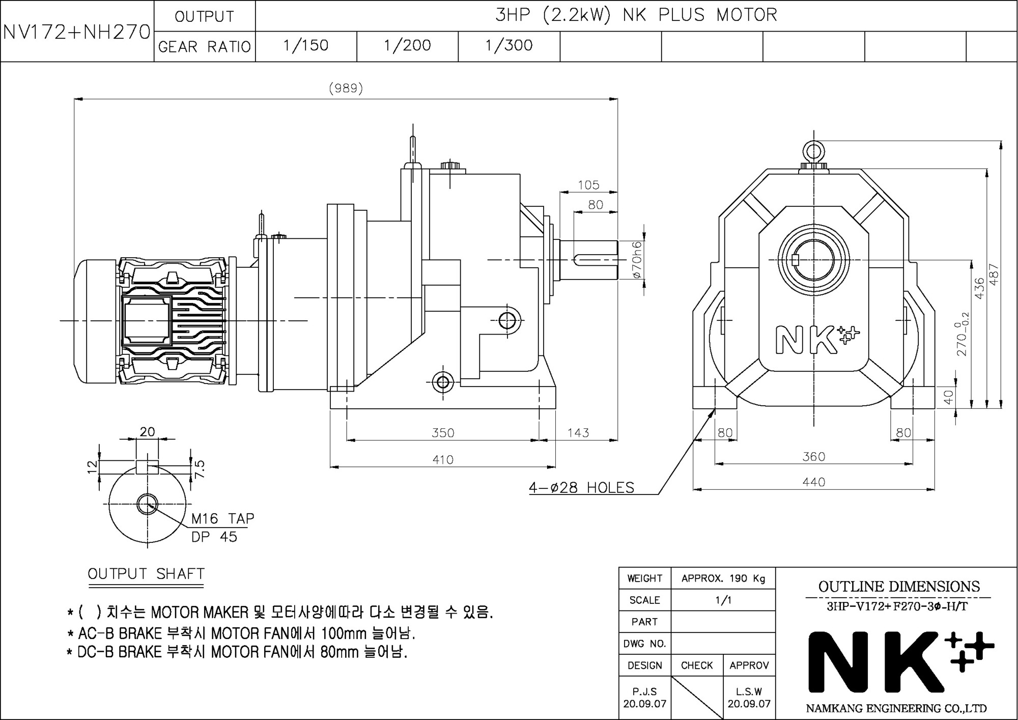 - NK PLUS MOTOR (남강 자사모터), 효성모터, 하이젠모터 적용