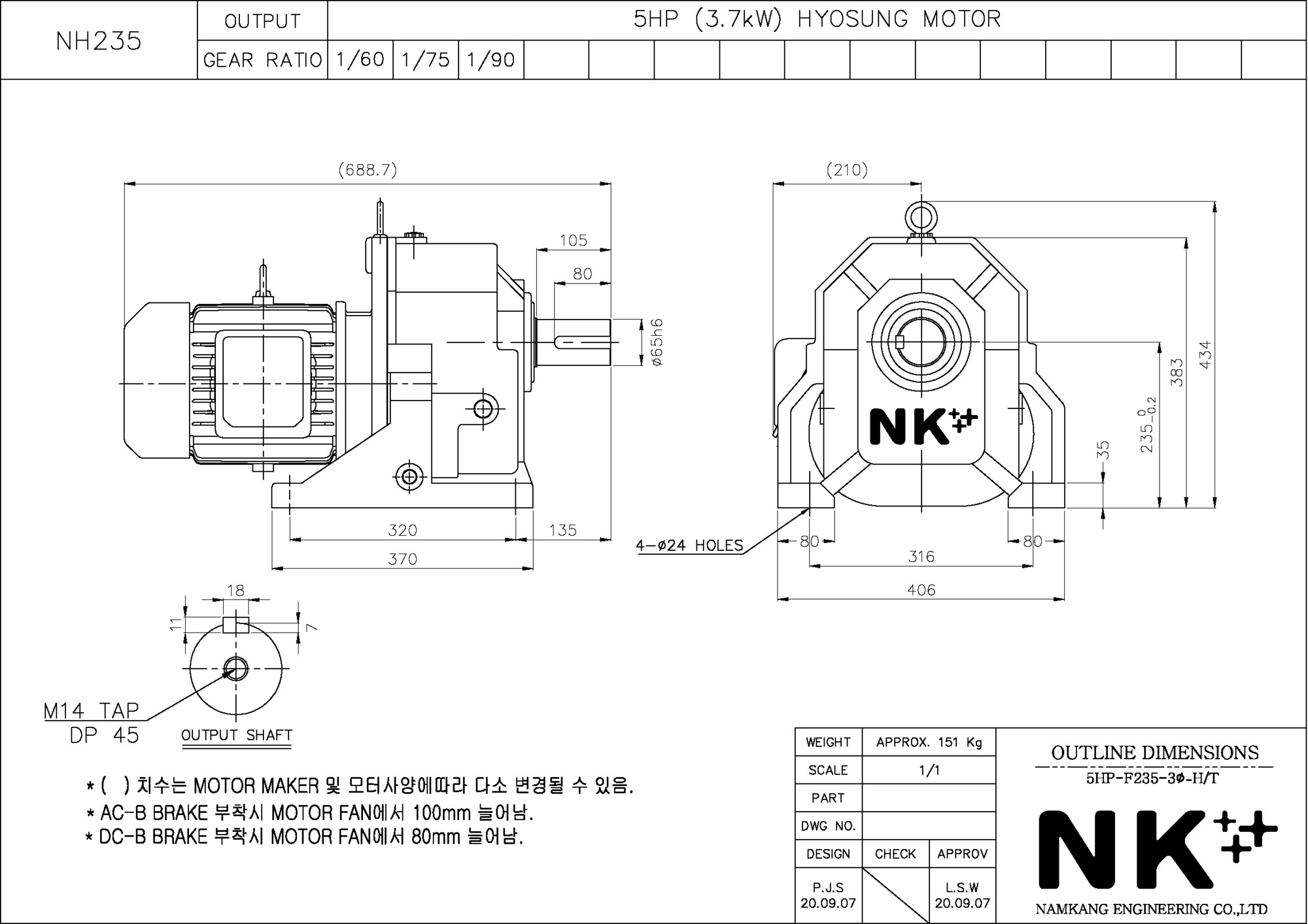 - NK PLUS MOTOR (남강 자사모터), 효성모터, 하이젠모터 적용